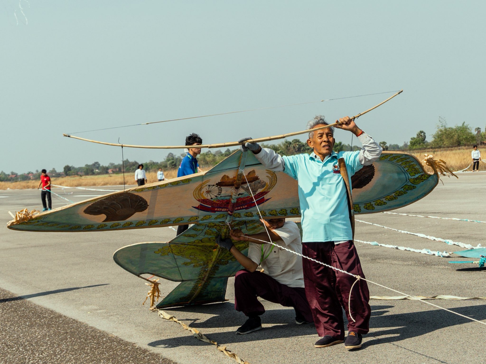 In Khmer, Khlaeng literally means “falcon.” The Khlaeng Aek is an artistic imitation of this powerful bird, shaped with careful balance and intention. Each part of the kite carries a name and purpose, resembling a living creature: