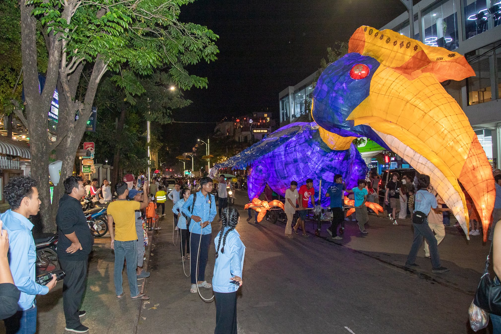 The Giant Puppet Parade is more than just a performance—it is a celebration of community spirit, artistic imagination, and Cambodia’s rich natural heritage. As giant animals dance through the streets and hundreds of children proudly guide their creations under the night sky, the parade reminds everyone of the beauty of creativity and the importance of protecting the world around us.