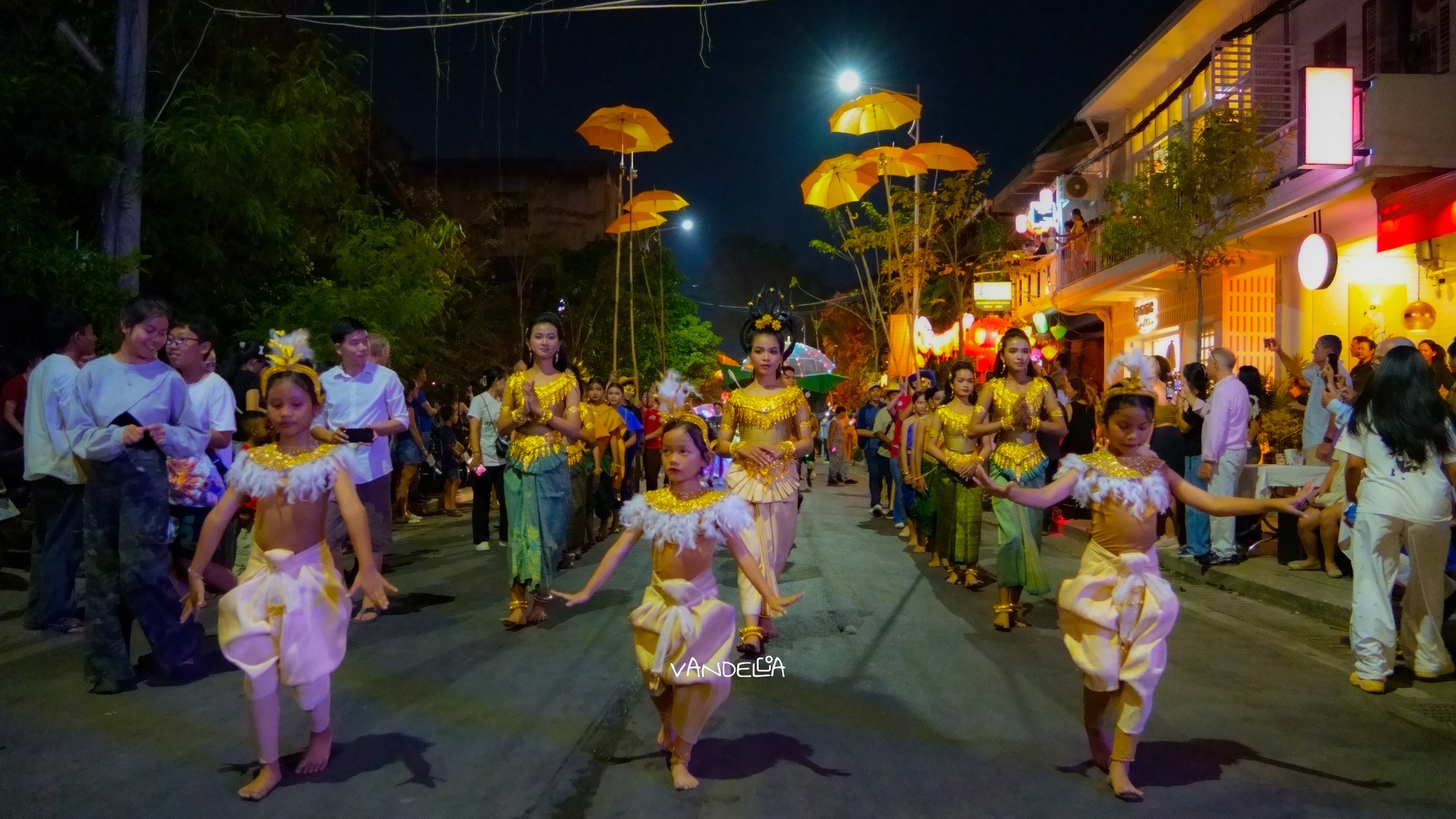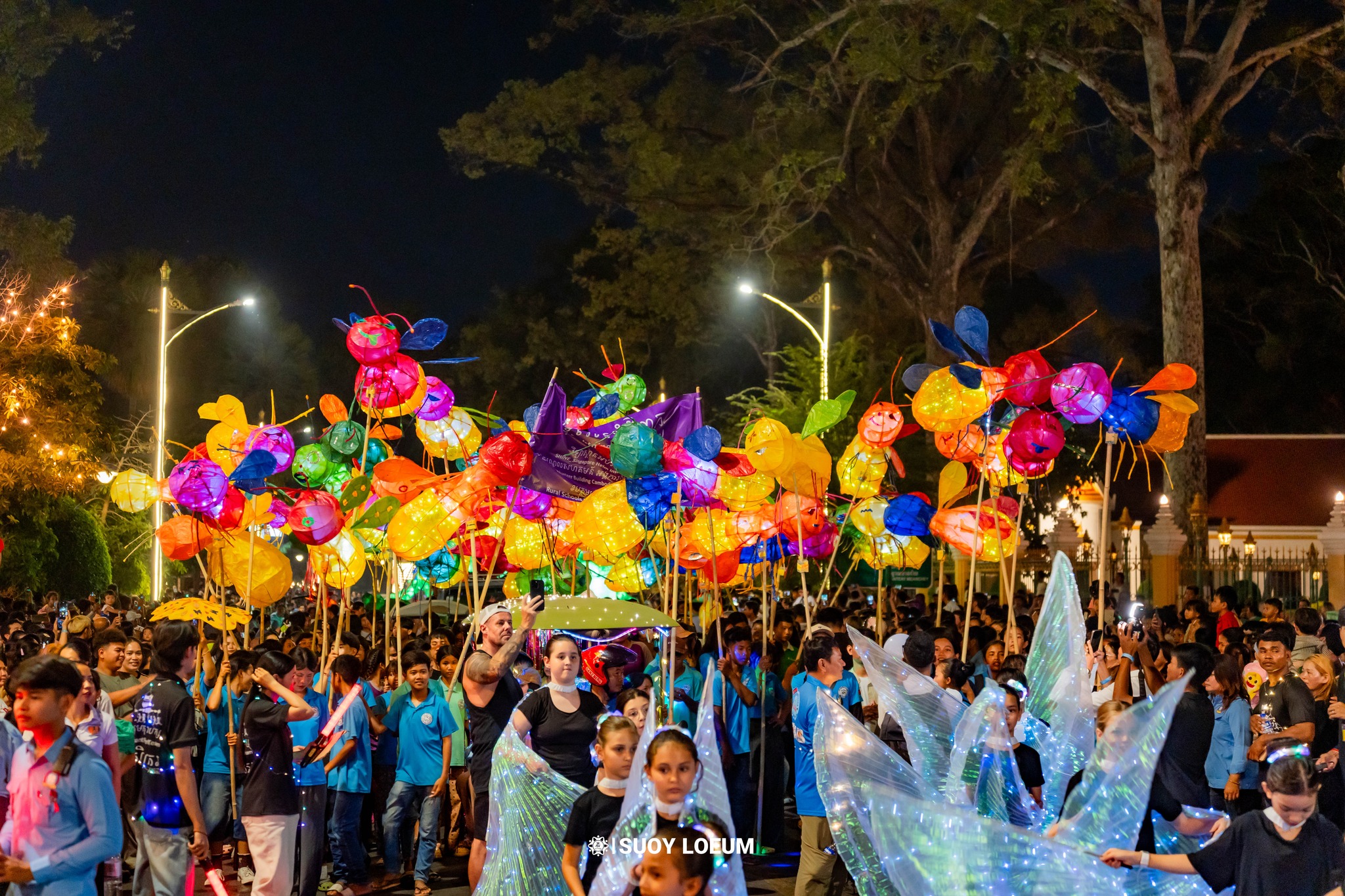 The parade begins at 6:00 PM, just as dusk settles over the city. Starting from Wat Damnak, the lively procession travels along the Siem Reap riverside, moving through Achar Sva Road before concluding at the beautiful Royal Gardens.