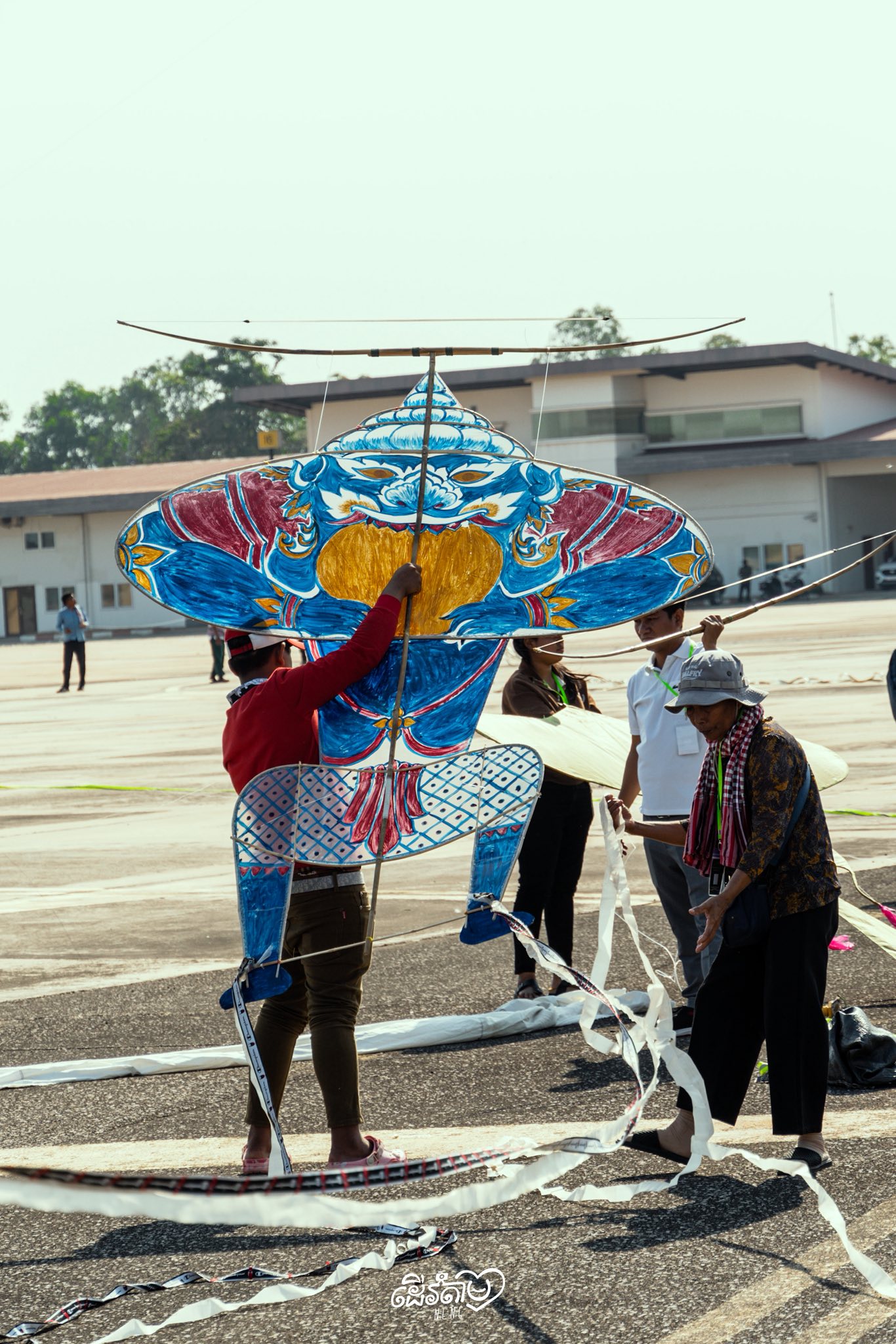 In Khmer, Khlaeng literally means “falcon.” The Khlaeng Aek is an artistic imitation of this powerful bird, shaped with careful balance and intention. Each part of the kite carries a name and purpose, resembling a living creature:
