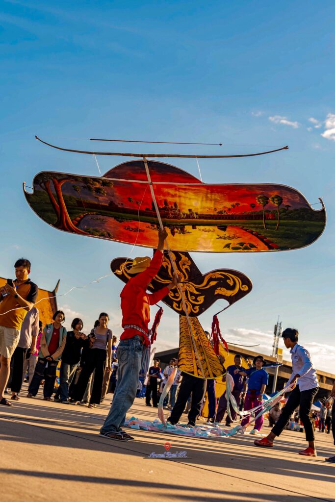 More than just a kite, the Khlaeng Aek is a masterpiece of Khmer craftsmanship, storytelling, and spiritual symbolism — a living tradition that still echoes in the skies of Siem Reap during the Cambodia Traditional Khlaeng Aek and Freestyle Kite Festival (ពិធីបុណ្យបង្ហើរខ្លែងឯកខ្មែរ និងខ្លែងសេរី).